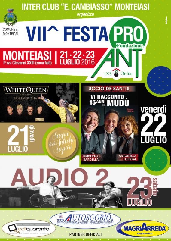 L'Inter Club "E. Cambiasso" di Monteiasi (TA) organizza la VII^ FESTA PRO-ANT 2016 che si terrà a Monteiasi (TA) nei giorni 21, 22 e 23 luglio 2016