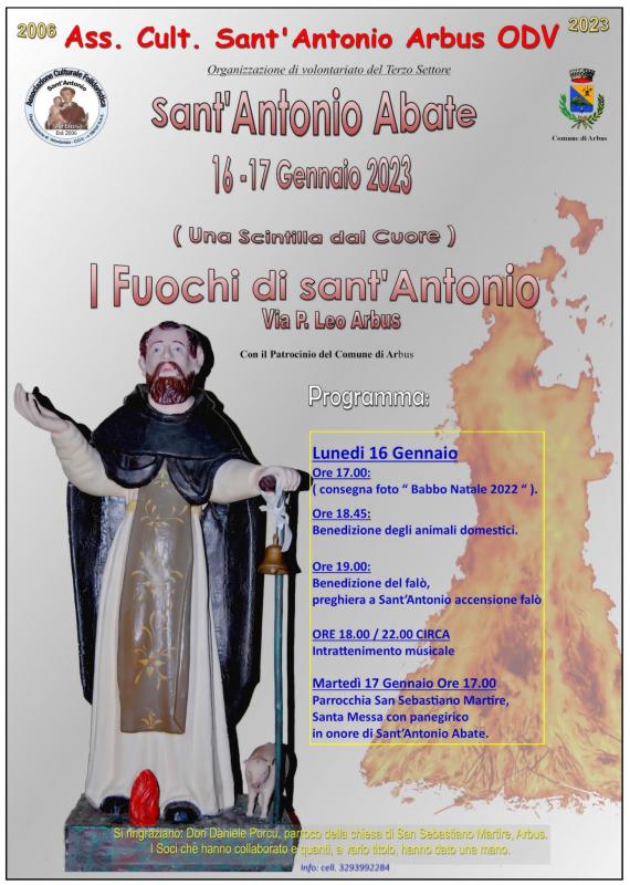 Come da 16 anni a questa parte, le tradizioni secolari giunte sino a noi, riprendono vita. Vi aspettiamo come sempre il 16 gennaio prossimo in via P. Leo ad Arbus per i fuochi di Sant'Antonio Abate.