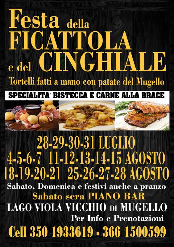 La tradizionale Festa del Cinghiale e delle ficattole si terrà al Lago Viola di Barbiana, a Vicchio (FI), un posto incantevole e fresco d'estate.