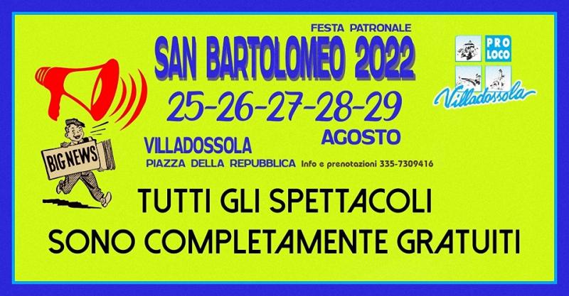 In Piazza della Repubblica a Villadossola in provincia di Verbano-Cusio-Ossola si svolgono nei giorni dal 25 al 29 Agosto 2022 i Festeggiamenti di San Bartolomeo.