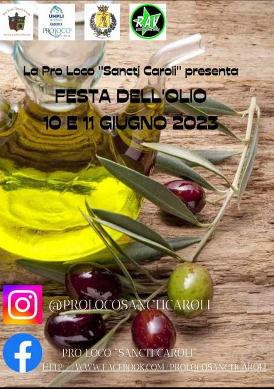 Festa dell'olio a San Carlo di Sessa Aurunca 10 e 11 Giugno 2023, stand Gastronomici , esposizione di prodotti locali e musica dal vivo .