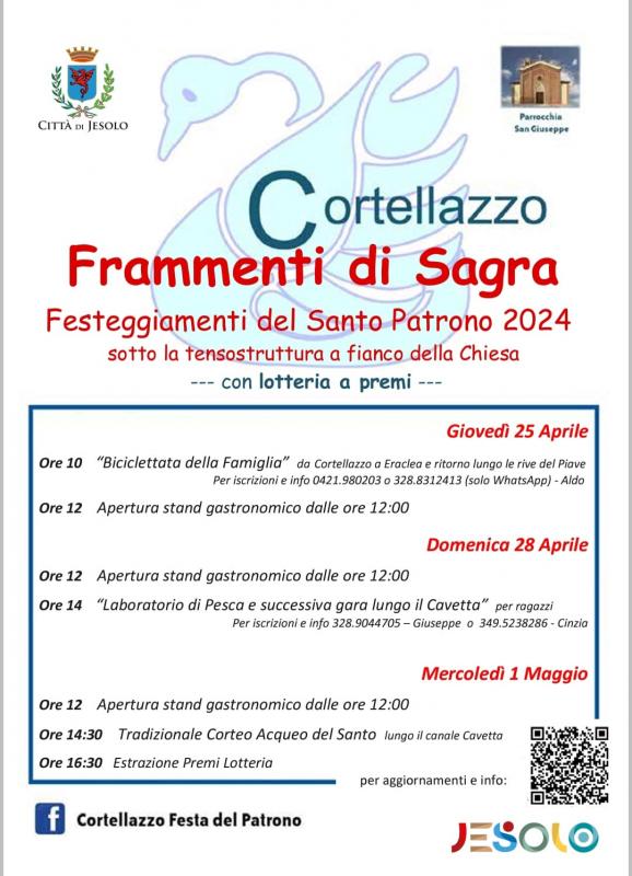 a Cortellazzo si svolgono i tradizionali festeggiamenti per la Festa del Patrono il 25, 28 Aprile e 1 Maggio 2024 dedicata a San Giuseppe Lavoratore.