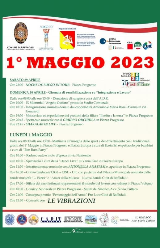 La Festa del Primo Maggio a Raffadali prevede eventi dal 29 Aprile al 01 Maggio.