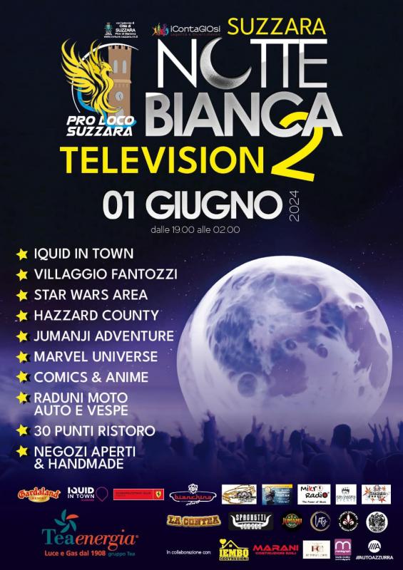 Torna anche quest'anno la Notte Bianca a Suzzara Giovedì 01 Giugno 2024 e sarà festa dal pomeriggio fino a tarda notte. Una notte tra spettacoli e musica, tra ristorazione e shopping, tra danza e cultura, tra sport e motori.