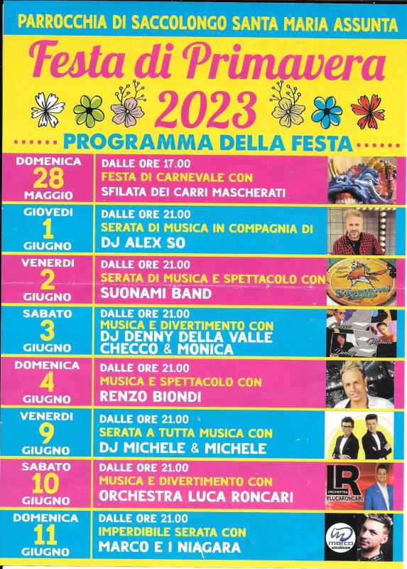 Festa di Primavera di Saccolongo 24, 25, 26, 31 maggio - 1-2 Giugno 2024
