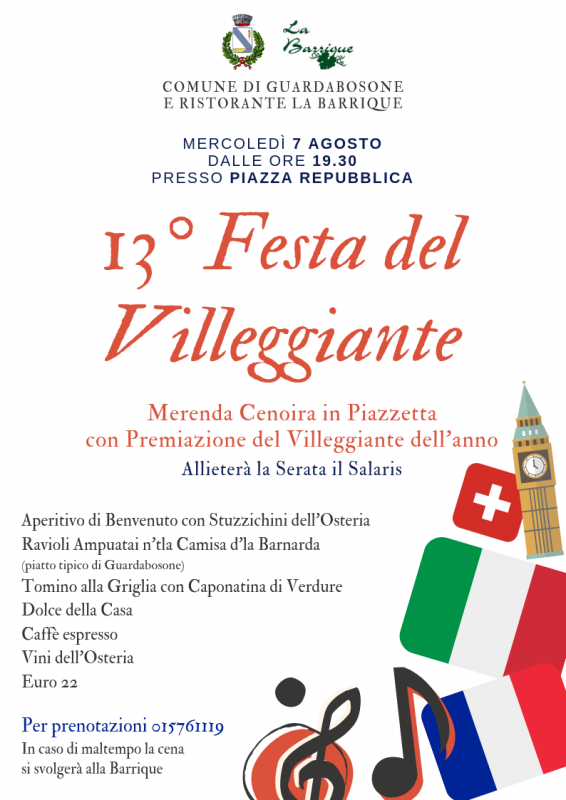 Mercoledì 7 Agosto 2019 a Guardabosone si svolge la Festa del Villeggiante.