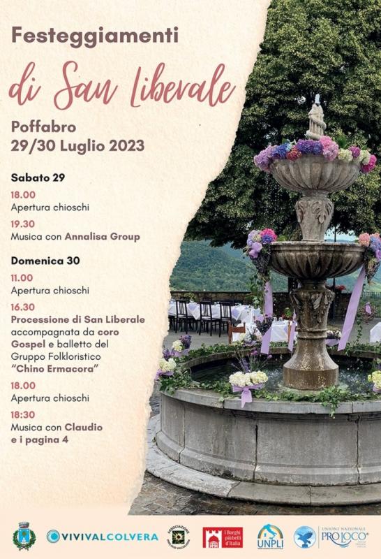 L’annuale sagra paesana si tiene in occasione della ricorrenza di San Liberale, a cui la Comunità di Poffabro ha affidato i suoi caduti dopo la Prima Guerra Mondiale, due giorni all’insegna della tradizione con la celebrazione religiosa alla quale si accompagneranno come di consueto musica, giochi ed enogastronomia.