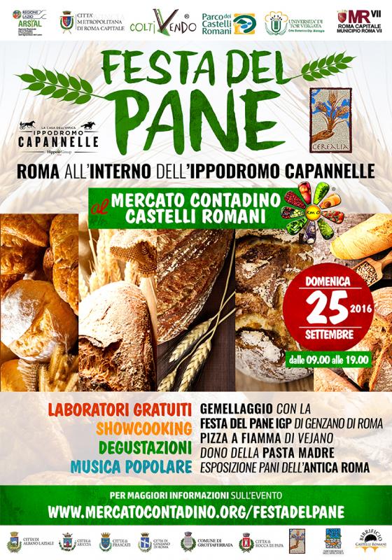 Domenica 25 settembre 2016 imperdibile giornata insieme al Mercato Contadino Castelli Romani che si svolgerà all'interno dell’Ippodromo Capannelle con La FESTA del PANE dalle ore 9 alle 19.
