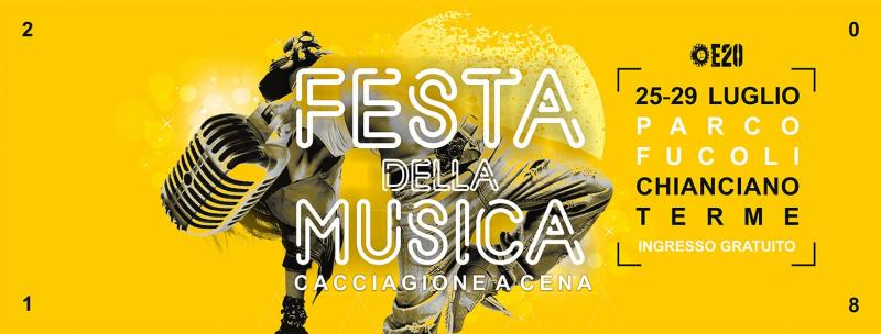 Chianciano Terme, 22 giugno 2018 - Un'appuntamento immancabile nel calendario dei festival toscani. È la Festa della Musica di Chianciano Terme che quest'anno giunge alla sua XIX edizione: dal 25 al 29 luglio al Parco Fucoli cinque giorni di musica con ospiti nazionali ed internazionali, enogastronomia di qualità a Km Zero, mercatini artigianali e allestimenti creativi. Il tutto a ingresso completamento gratuito.