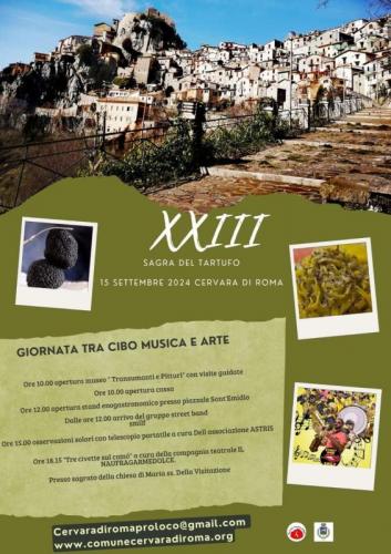 Siamo lieti di invitarvi alla Festa degli Artisti ed alla XXIV Sagra del Tartufo presso la splendida cornice di Cervara di Roma (RM), il 20 e 21 Settembre 2025 a soli 70 km dalla Capitale!