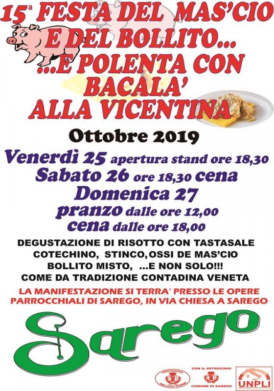 La Festa del Mas'cio e del Bollito e Polenta con Bacalà alla Vicentina si svolge a sarego dal 25 al 27 Ottobre 2019 - Sarego (VI)
