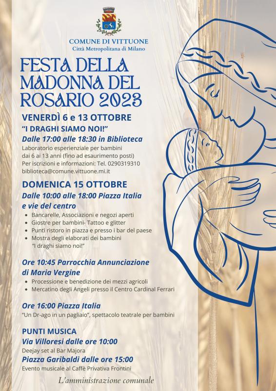 A Vittuone in provincia di Milano si svolge nella giornata di Domenica 15 Ottobre 2023 la Festa della Madonna del Rosario e del Ringraziamento.
