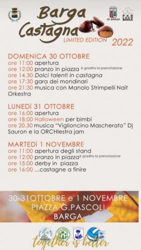 Tre giorni dedicati alla castagna, con mondine, necci, frittelle e castagnaccio, accompagnati dagli immancabili vin brulè, vino novello e birra di castagna.