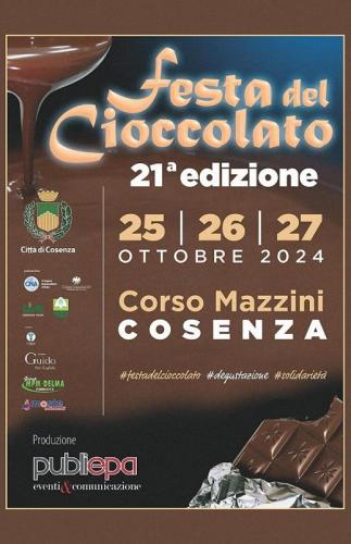 A Cosenza l'appuntamento con la dolcezza torna su Corso Mazzini dal 25 al 27 ottobre 2024 per la 21° edizione della Festa del Cioccolato. La manifestazione - organizzata dalla Publiepa srl col patrocinio del Comune di Cosenza - costituisce il clou dell'autunno cosentino e un modo veramente speciale di fare promozione del territorio.