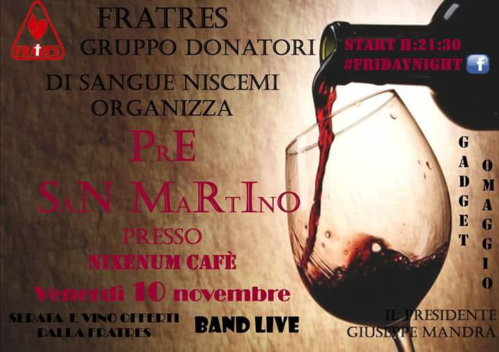 In occasione della festività di San Martino la Fratres Niscemi vi invita ad una serata di musica live, amicizia...vino e sfinci!