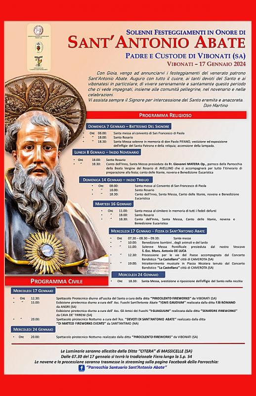 Ogni anno il 17 Gennaio si celebra la Festa di Sant'Antonio Abate a Vibonati (SA) presso la Parrocchia Santuario dedicata al Santo.