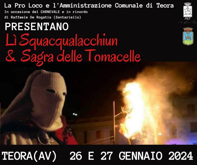 Si rinnova a Teora, come ogni anno l'appuntamento con i tradizionali "Squacqualacchiun", maschere che girano per il paese con dei bastoni causando un rumore cupo di campanacci disturbando i passanti con lazzi e gesti un po' "spinti", rumoreggiando per i rioni del paese e scomparendo nei vicoli dello stesso. La tradizione che da avvio al carnevale prende il nome da questi uomini camuffati che si aggirano all’interno di Teora senza un preciso significato; sembrerebbe un appellativo dato dalla gente per schernirli. Il termine "Squacqualacchiun" potrebbe infatti derivare dalla voce dialettale "squacquarat" che significa ‘trasandato'.