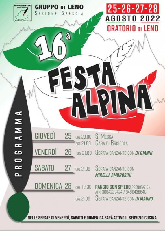 Il 25-26-27-28 agosto torna la tradizionale Festa Alpina giunta alla sua 16° edizione .