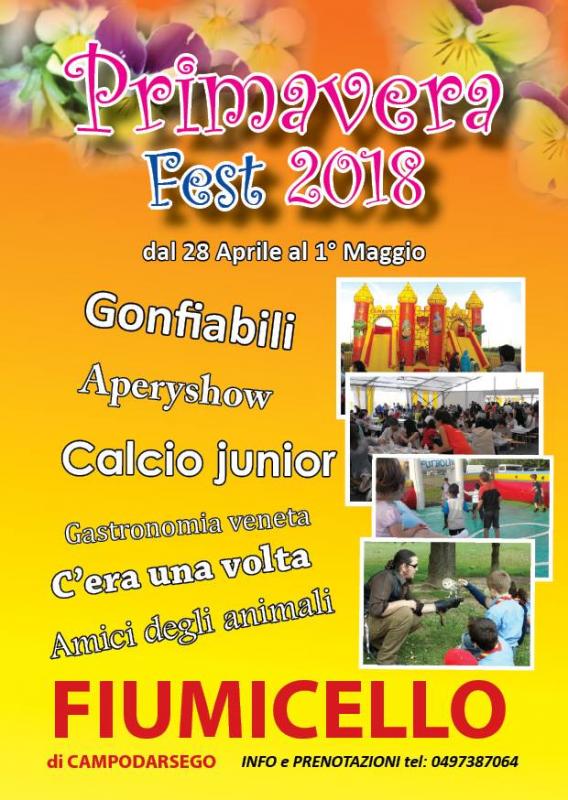 Dal 28 aprile all'1 maggio 2018 torna Primavera fest a Fiumicello, evento organizzato dalla Parrocchia "San Nicola" di Fiumicello di Campodarsego.
