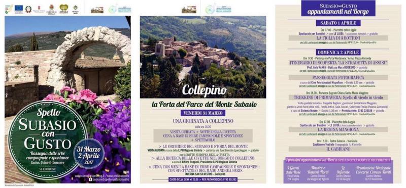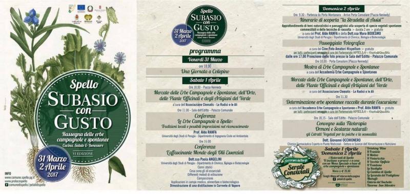 A Spello dal 31 marzo al 2 aprile 2017 arriva la 6^ edizione di Subasio con Gusto, la rassegna delle erbe campagnole e spontanee in cui le parole d'ordine sono: Cucina, Salute & Benessere