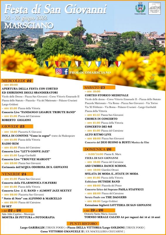 A Marsciano in provincia di Perugia si svolge nei giorni dal 22 al 26 Giugno 2022 la nuova edizione della Festa di San Giovanni.