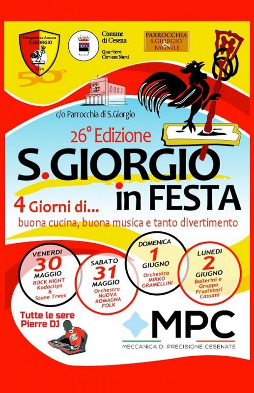 Da Venerdì 30 Maggio a Lunedì 02 Giugno 2025 la Polisportiva Aurora organizza a San Giorgio di Cesena la 26a edizione di San Giorgio in Festa.