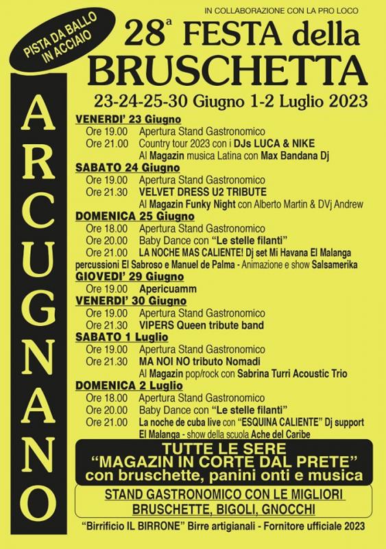 Festa della Bruschetta ad Arcugnano 23, 24/25, 30 Giugno e 1/2 Luglio