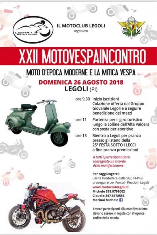 Il programma di eventi è molto ricco e si evidenzia l'appuntamento di domenica 26 agosto con il Moto Vespa Incontro (programma in allegato).