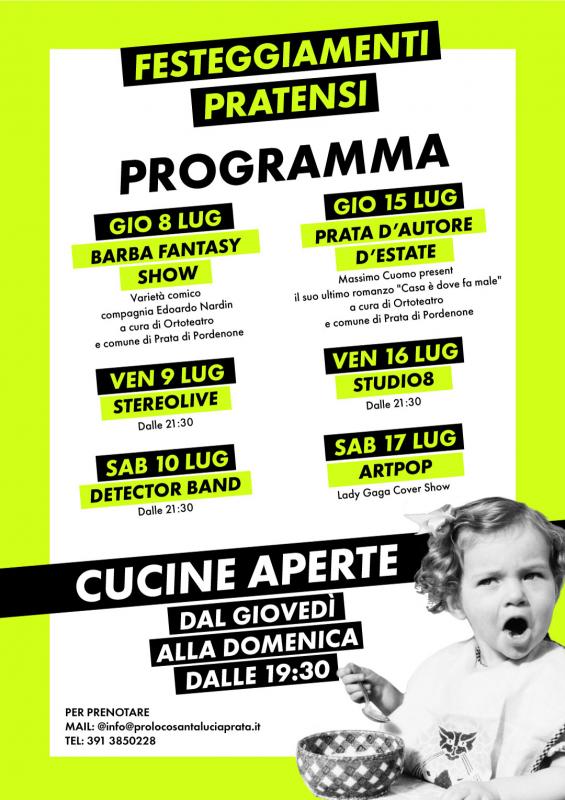 A Prata di Pordenone in provincia di Pordenone si svolgono nei giorni dal 08 al 18 Luglio 2021 i Festeggiamenti Pratensi.