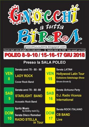 Poleo in Festa con Gnocchi a tutta Birra a Poleo di Schio (VI) nei giorni 8, 9, 10, 15, 16, 17 giugno 2018.