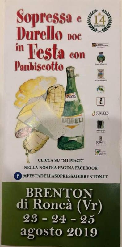 Dal 23 al 25 Agosto 2019 torna l'appuntamento enogastronomico Sopressa e Durello DOC in Festa con Panbiscotto a Brenton di Roncà (VR).