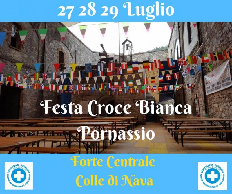 Nelle antiche mura del Forte Centrale del Colle di Nava, si terrà la 27^ Festa della Croce Bianca, a sostegno della pubblica assistenza della Croce Bianca di Pornassio. Campeggio libero nella zona del campo sportivo adiacente al forte per tutte le 3 giornate.