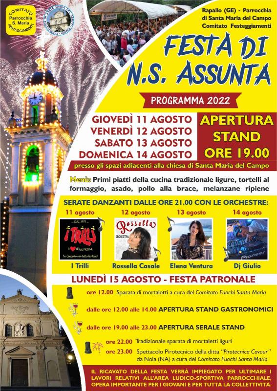 Il programma della Festa dell'Assunta 2022 va dall'11 agosto fino alla tarda serata del 14 agosto