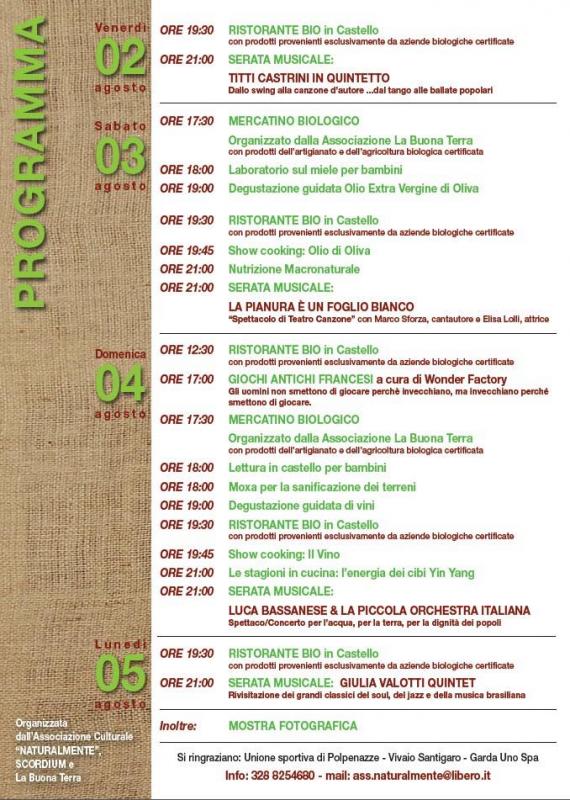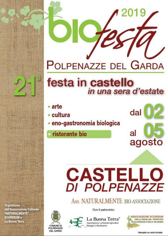 Il castello di Polpenazze del Garda ospita dal 2 al 5 agosto la 21esima edizione della BioFesta, tradizionale appuntamento dell’estate gardesana dedicato alle produzioni biologiche dei territori bresciani e lombardi. Quattro giorni di enogastronomia, produzioni tipiche, degustazioni, musica e cultura all’insegna della filosofia bio ed eco-compatibile.