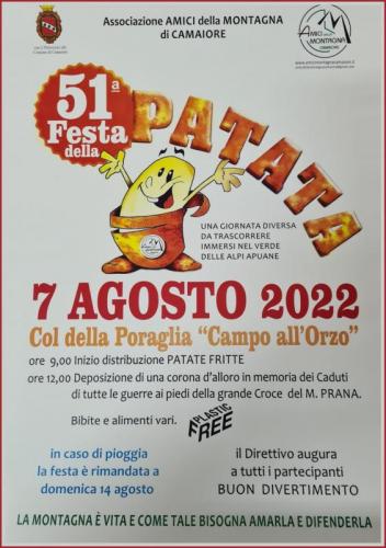 La 51a Festa della Patata a Campo all'Orzo, Camaiore, si svolge Domenica 07 Agosto 2022.