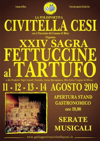 La celeberrima Sagra si svolge nei giorni 11 - 12 - 13 e 14 Agosto nell'antico Borgo Medioevale di Civitella Cesi.