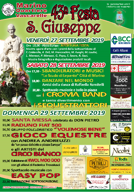 43^ Festa di San Giuseppe a Marino - Roma Piazza Europa 27-28-29 Settembre 2019.