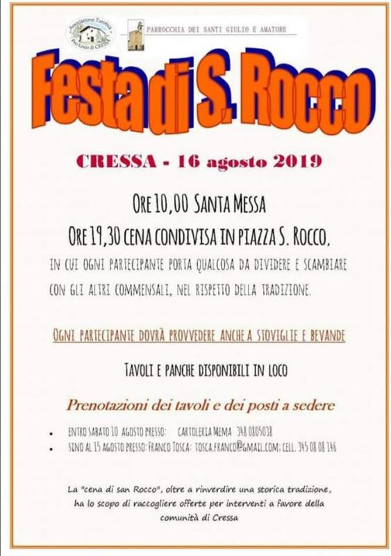 Il 16 agosto si svolge la Festa di San Rocco a Cressa.