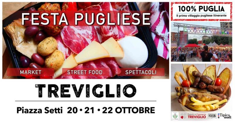 Tipico Eventi insieme a Cucina di Puglia approdano per la prima volta a Treviglio con l’amatissimo format “100% Puglia”, il primo villaggio pugliese itinerante, che porterà i suoi ospiti a scoprire le bellezze e le bontà di una terra ricca di storia, tradizioni e cultura Piazza Setti si troverà immersa in un’atmosfera magica e davvero suggestiva, perché il nostro obiettivo è farvi viaggiare rimanendo a pochi passi da casa: le strutture a forma di trullo, gli immancabili ulivi e le iconiche luminarie pugliesi vi lasceranno senza fiato Trascorrete con noi tre intense giornate all’insegna del miglior cibo di strada, degli inimitabili prodotti pugliesi e di tanto divertimento per tutti