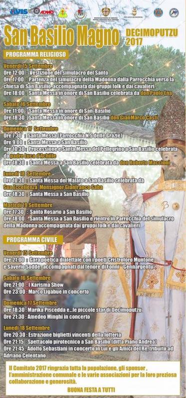 -Ore 17:00 Partenza del simulacro della Madonna dalla parrocchia di Decimoputzu verso la chiesa di San Basilio accompagnata dai gruppi folk e dai cavalieri