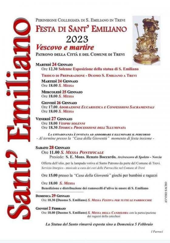 Il 28 Gennaio Trevi torna a festeggiare il Santo Patrono della città e del Comune di Trevi, Sant'Emiliano