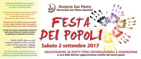 L’oratorio San Pietro organizza anche quest'anno la "Festa dei Popoli”, manifestazione caratterizzata dalla degustazione di piatti tipici internazionali e animazione a cura delle diverse rappresentanze etniche presenti ad Assemini.