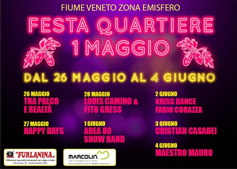 Da venerdì 31 maggio a domenica 16 giugno, ritorna la tradizionale festa al Quartiere Primo Maggio di Fiume Veneto!