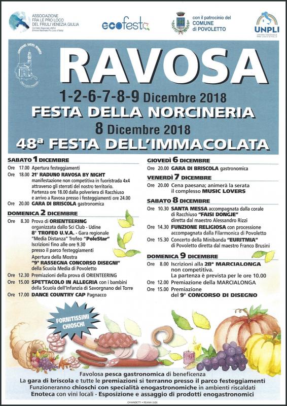 Dal 01 al 09 Dicembre 2018 a Ravosa di Povoletto (UD) si svolgono gli eventi della Festa della Norcineria e della 48a Festa della Madonna Immacolata.