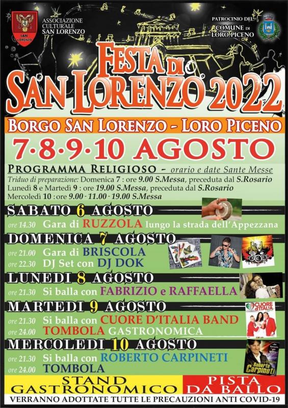 Associazione Culturale San Lorenzo vi aspetta il 7-8-9-10 Agosto a Loro Piceno per la Festa di San Lorenzo