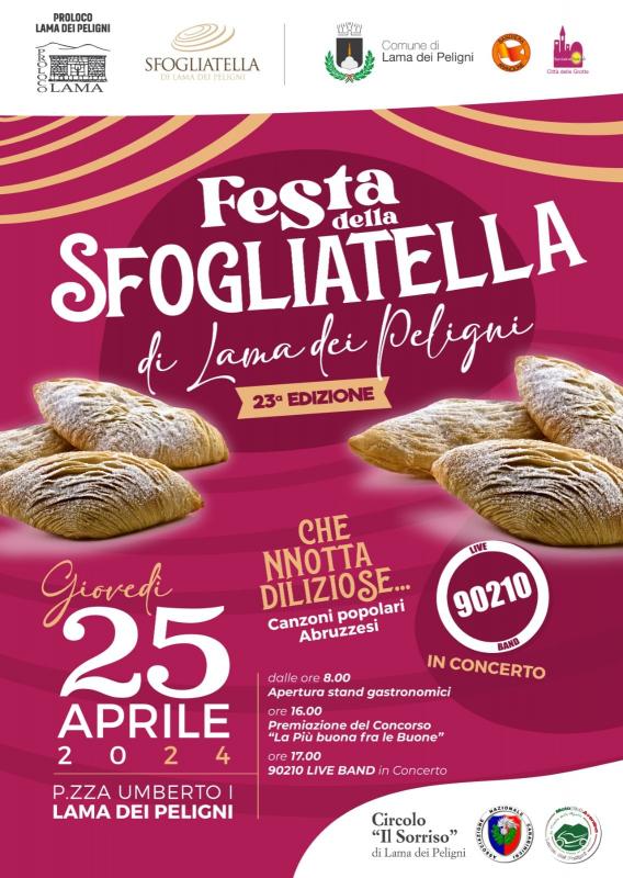 A Lama dei Peligni, grazioso paese alle falde della Majella, ogni anno- l'ultima domenica di aprile-, si svolge una dolce festa dedicata alla gustosa e fragrante Sfogliatella, prodotto doc di questa terra. Le sue origini risalgono ai primi del ‘900, quando donna Anna, moglie del barone Tabbasi, si trasferì a Lama ed adattò la ricetta della più nota sfogliatella napoletana alla disponibilità di ingredienti tipici della zona. Così la sfoglia, con l'uso dello strutto, diventò più morbida e la farcitura venne modificata con l'uso della marmellata d'uva, della marmellata di amarena, del mosto cotto e delle noci. La ricetta fu custodita gelosamente per anni e solo intorno agli anni '60 si diffuse tra i Lamesi.