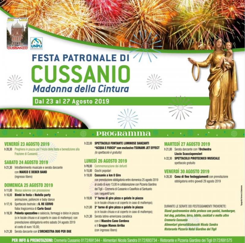 Festa patronale di Cussanio , madonna della cintura dal 23 al 27 Agosto 2019