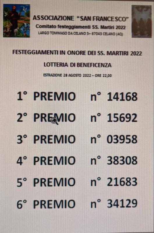 Estrazione di lotteria di beneficenza a Celano biglietti vincenti, qui di seguito -