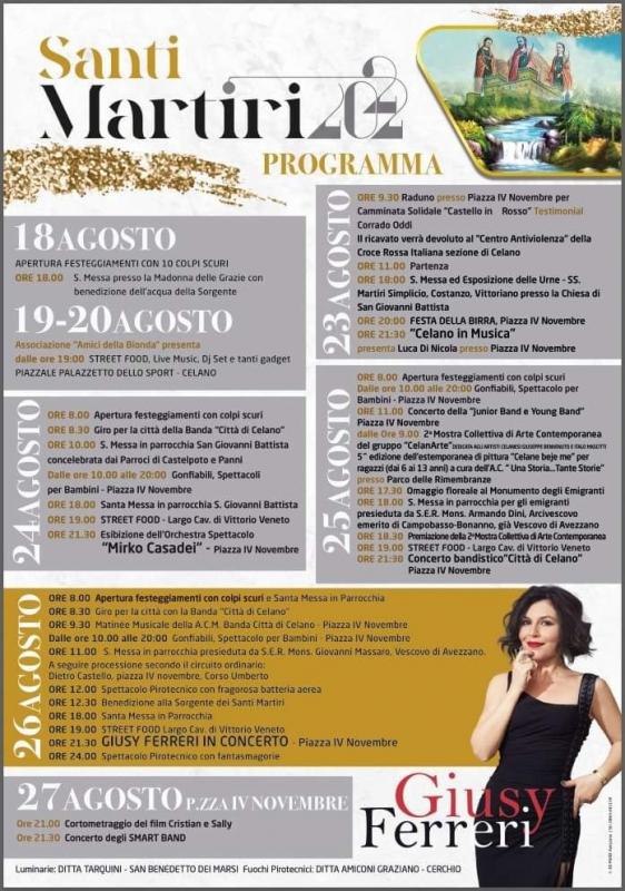 Festeggiamenti dei Santi Martiri a Celano 18-19-23-34-35-36-27 Agosto 2022