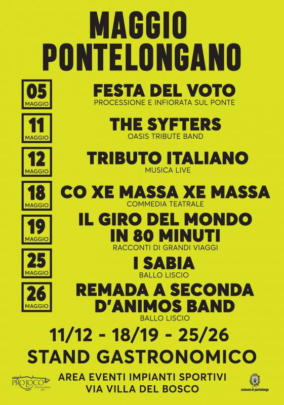 Maggio Pontelongano dal 5 al 26 maggio ritorna la manifestazione più importante per la Pro Loco di Pontelongo.